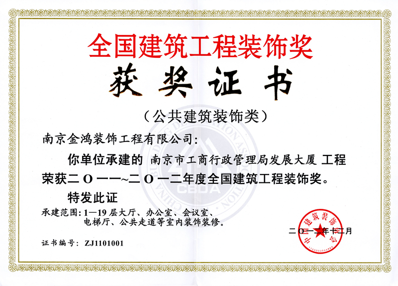 南京市工商行政管理局發(fā)展大廈榮獲2011-2012年度“全國建筑工程裝飾獎”