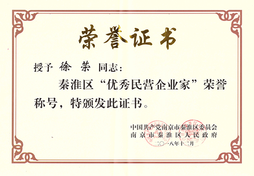 同時,會議還表彰了一批行業(yè)示范引領作用突出、勇于創(chuàng)新、具有良好的道德品行和社會形象的優(yōu)秀民營企業(yè)家。金鴻裝飾董事長徐榮先生榮獲“秦淮區(qū)優(yōu)秀民營企業(yè)家”稱號。
