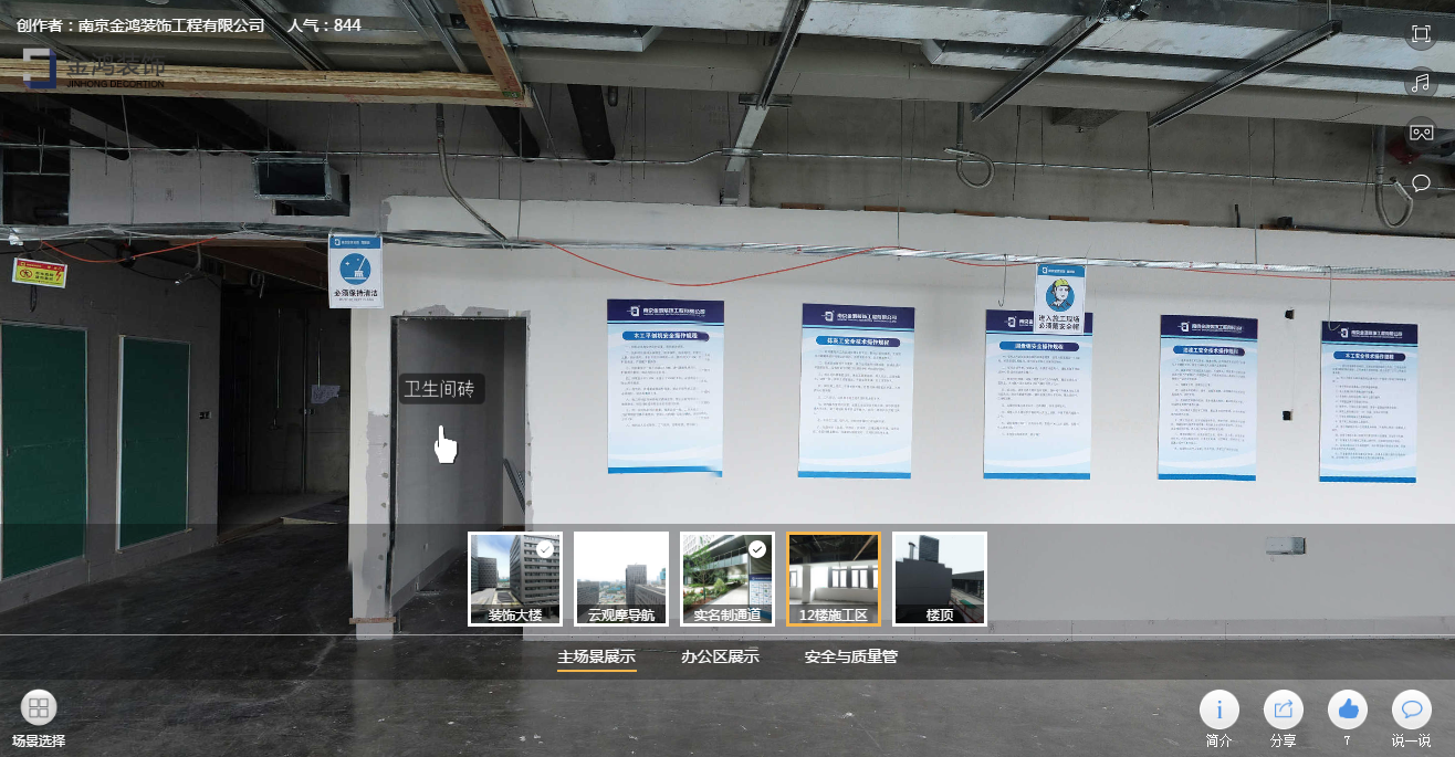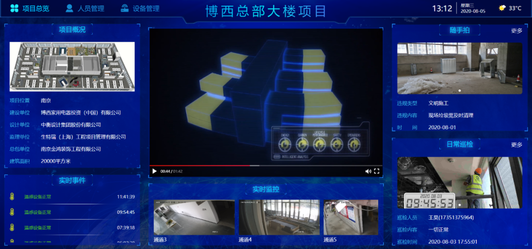 此次“云觀摩”,以視頻和360全景形式納入“江蘇省建筑施工安全管理系統(tǒng)”安全教育資源庫,全方位、多維度、立體化、實(shí)時(shí)地展示我司在疫情防控、工程質(zhì)量與安全管控、智慧化工地建設(shè)和BIM運(yùn)用等方面的成果;展示了智慧工地管理體系,智慧防疫、人臉識別、煙霧預(yù)警、溫度預(yù)警、臨邊防護(hù)預(yù)警等安全管理先進(jìn)系統(tǒng),集中供各地線上實(shí)景觀摩與交流學(xué)習(xí)。